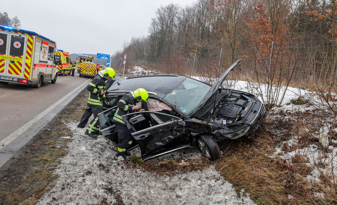 Der VW Passat überschlug sich und landete im Seitengraben, wobei der Fahrer (Alter noch unbekannt) und seine 58-jährige Beifahrerin schwer verletzt wurden. Der 61-jährige Skoda-Fahrer erlitt leichte Verletzungen. Die Unfallstelle in Fahrtrichtung Dresden war gegen 13:15 Uhr wieder geräumt und alle Fahrstreifen befahrbar.