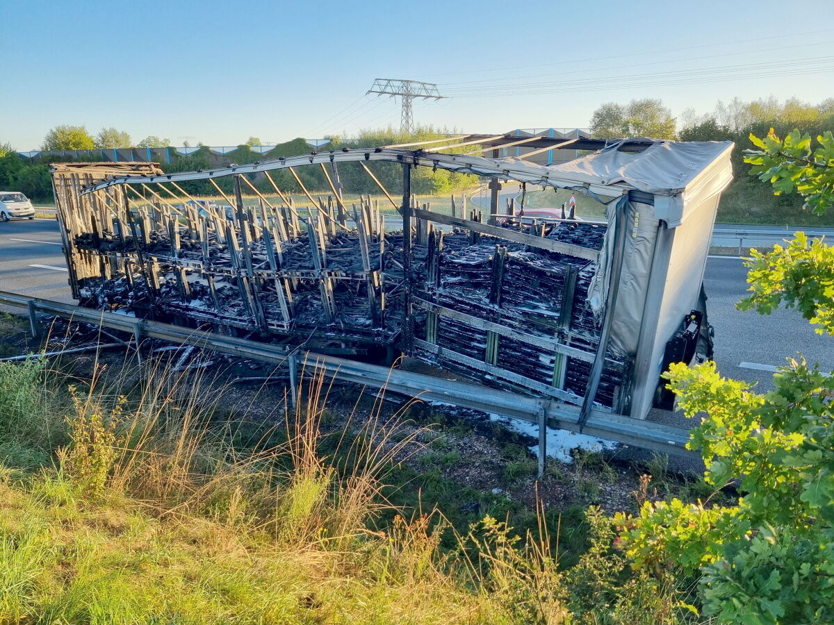 - Der LKW hatte Gelenkwellen geladen und brannte vollkommen aus.