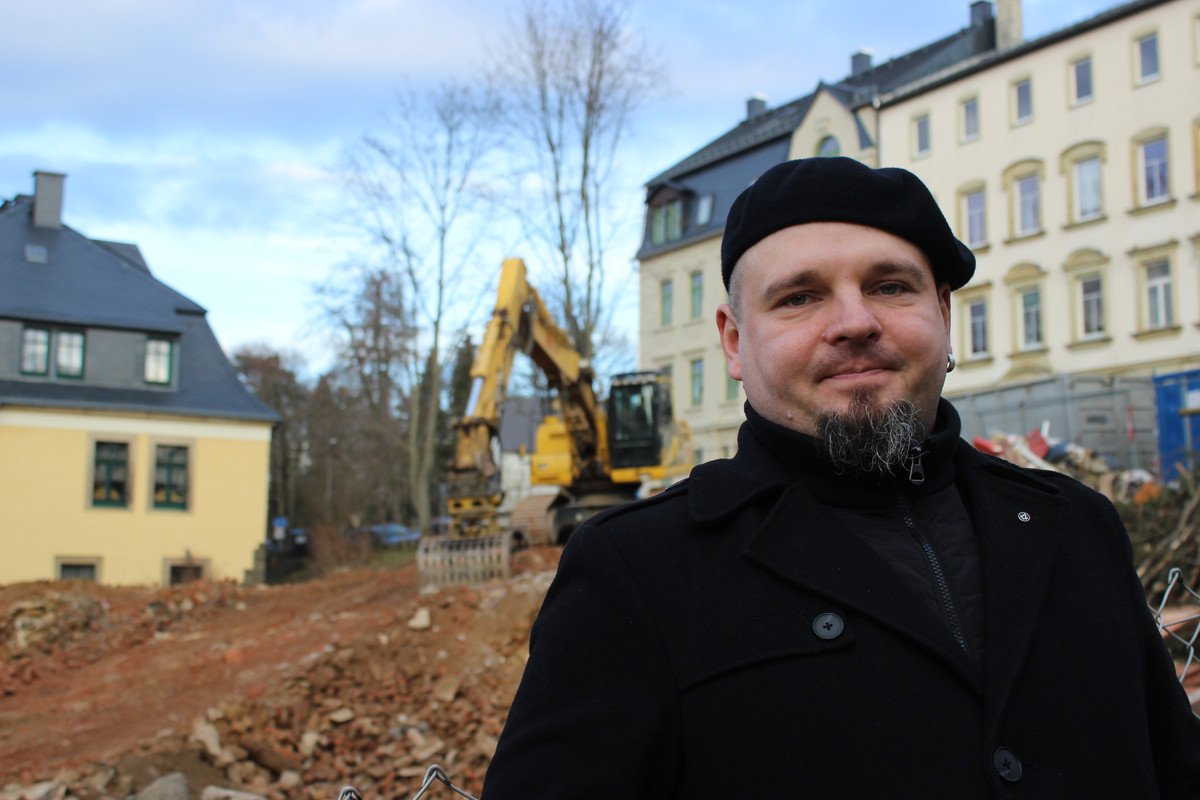 - Archivar Berndt Thomas Möckel am ehemaligen Logengebäude. Foto © Sindy Einhorn