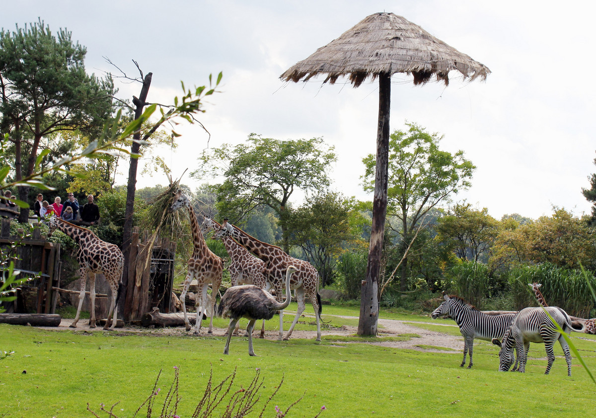 - In der Afrika-Savanne haben die Pfleger einen Sonnenschirm für die Giraffen aufgestellt, um ihnen einen Schutz vor der brennenden Sonne bieten zu können. (Foto: Quelle Zoo Leipzig)