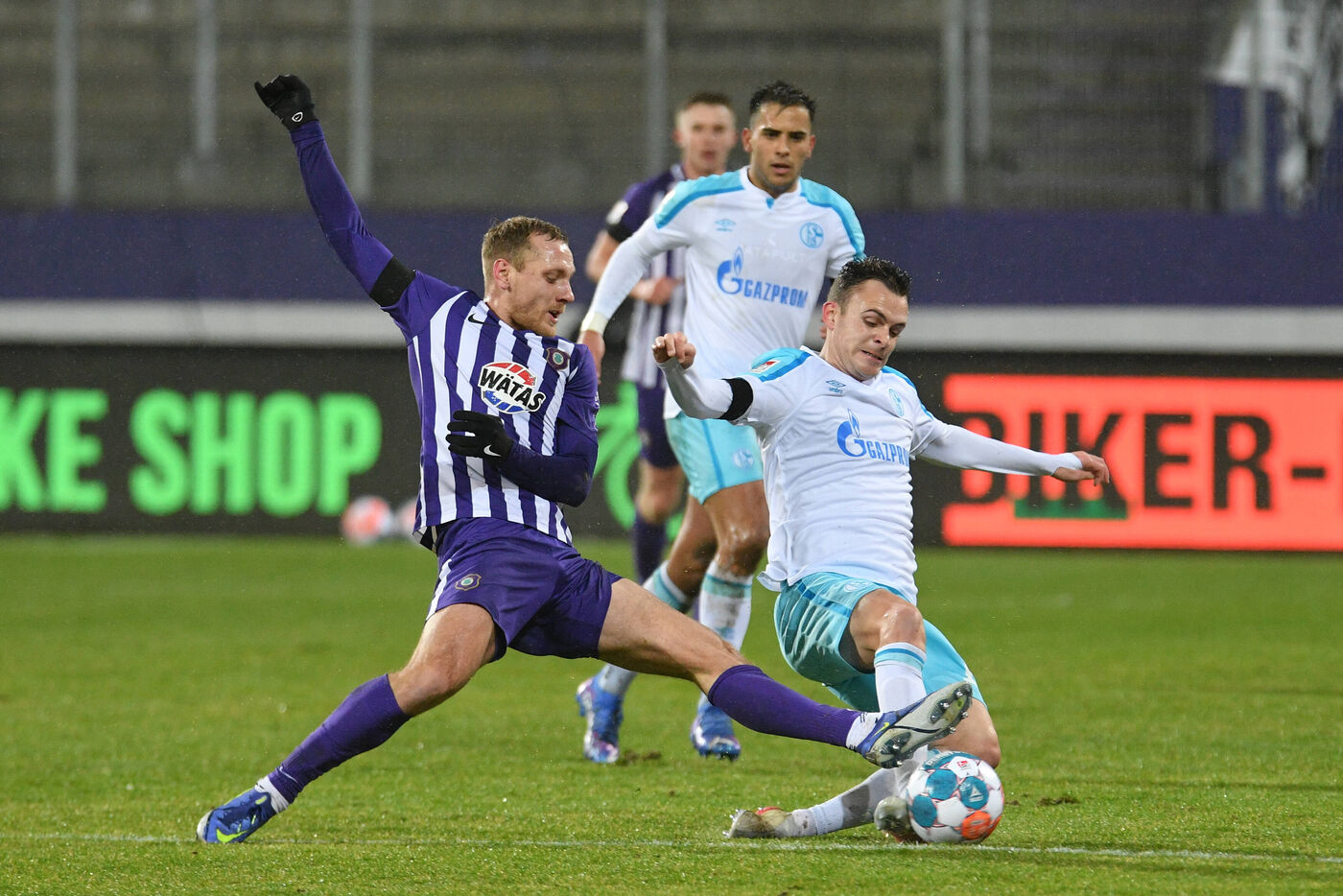 Schalke, das seinen ersten Auswärtssieg seit Mitte Oktober feierte, war von Beginn an überlegen. Allerdings ließen die Gäste die Durchschlagskraft im letzten Drittel vermissen, dort verteidigte Aue weitgehend problemlos. Die erste große Chance hatte dann Neuzugang Prince Owusu (14.) für die Gastgeber, der aber an eine Flanke von Ben Zolinski nicht genügend Druck bekam.