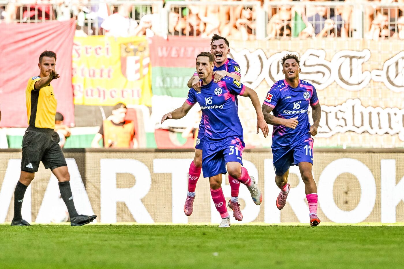 - Die Mainzer bejubeln den zweiten Treffer gegen Augsburg