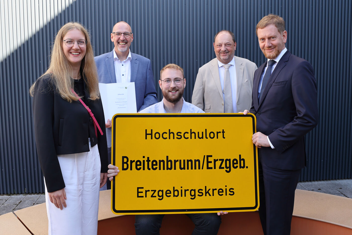 Breitenbrunn ist nun Sachsens erster offizieller Hochschulort.Den Namen darf die Gemeinde seit vergangenen Freitag tragen. Da übergab Ministerpräsident Michael Kretschmer die Urkunde an Bürgermeister Lars Dsaak.