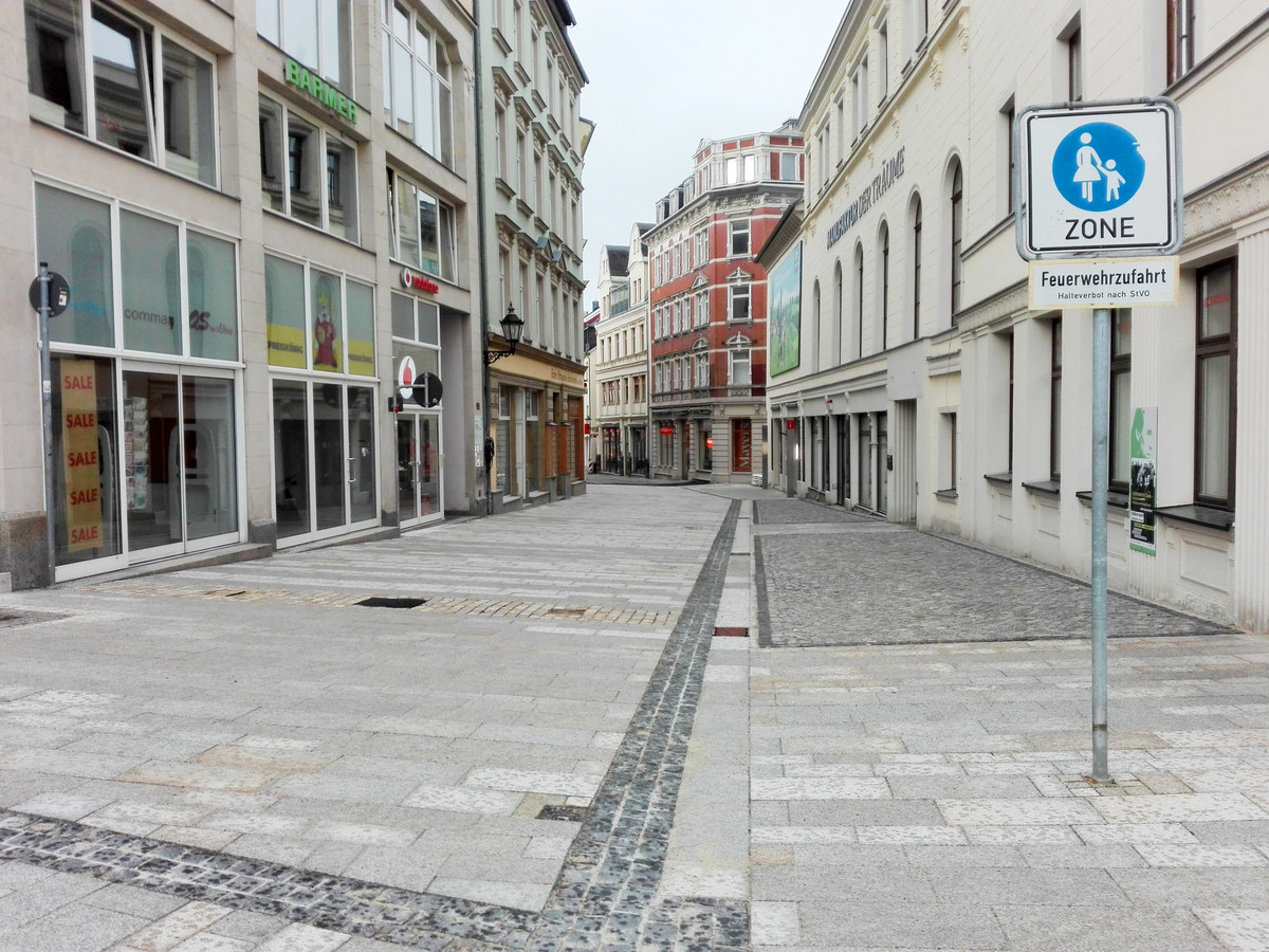 Die Belieferung der Einkaufsstraße bleibt über die Große Kirchgasse möglich. Das Parkhaus Altstadt II kann über die Scheibnerstraße angefahren werden. Dort wird die Einbahnstraßenregelung umgekehrt. Fußgänger können während der Bauzeit weiterhin vom Parkhaus die Fußgängerzone erreichen.