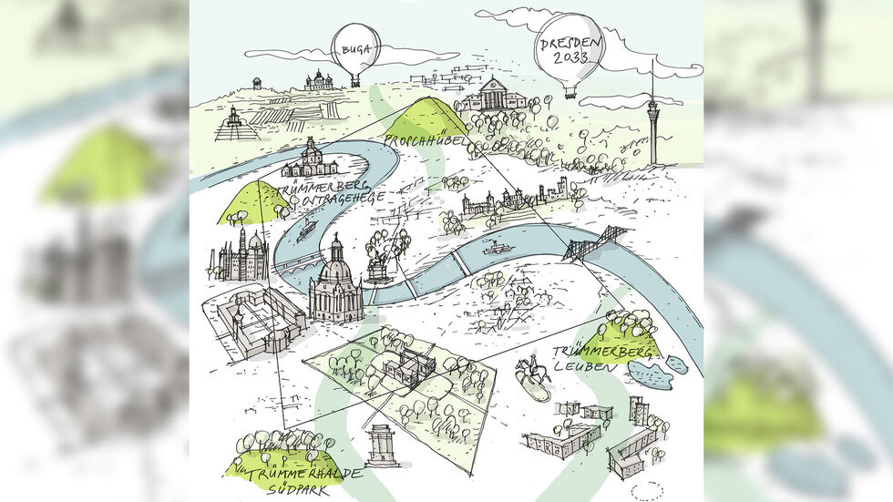 Als Leitmotiv der BUGA 2033 fungieren die Berge und Halden mit den Trümmern der verheerenden Luftangriffe vom 13. und 14. Februar 1945, die über das gesamte Stadtgebiet verteilt sind. Sie sind ein sichtbares Zeichen der wechselvollen Geschichte Dresdens, die reich an markanten Umbrüchen ist und bis heute immer wieder umfangreiche Transformationsprozesse durchlaufen hat.