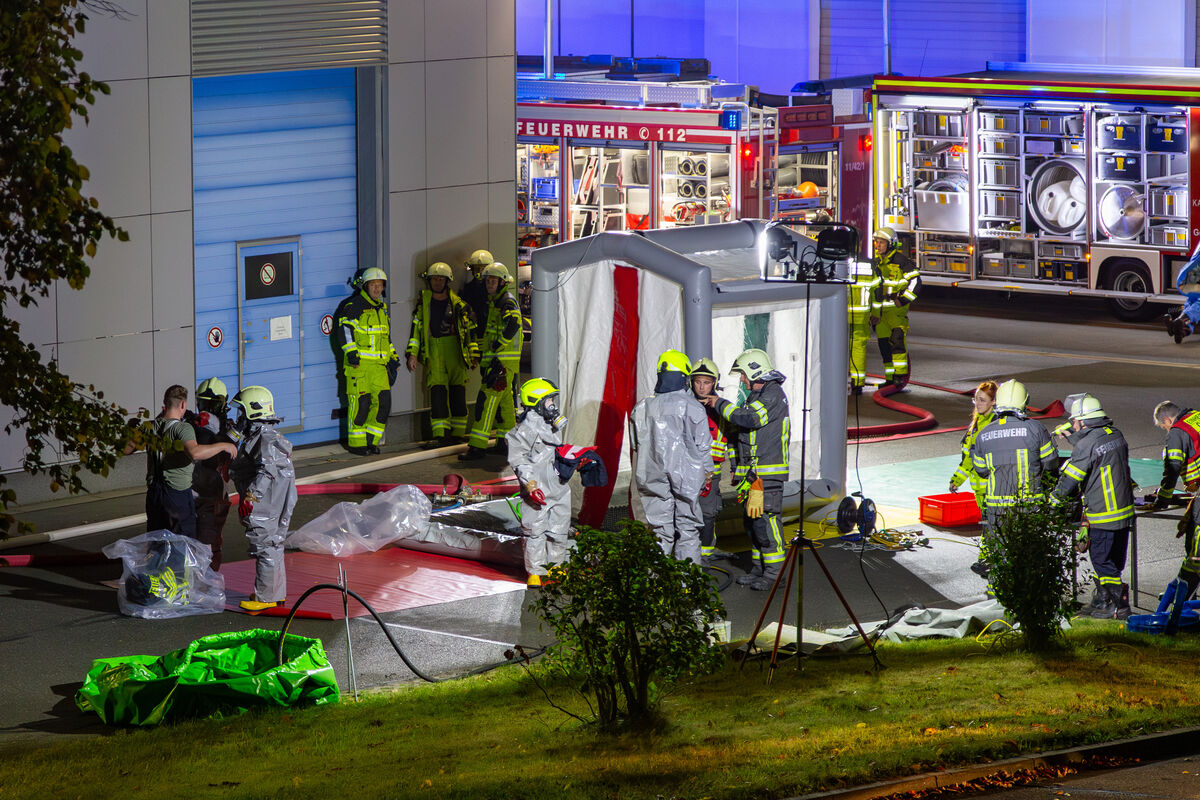 - Mit Spezialanzügen führten die Kameraden und Kameradinnen Messungen im betroffenen Gebäude durch.