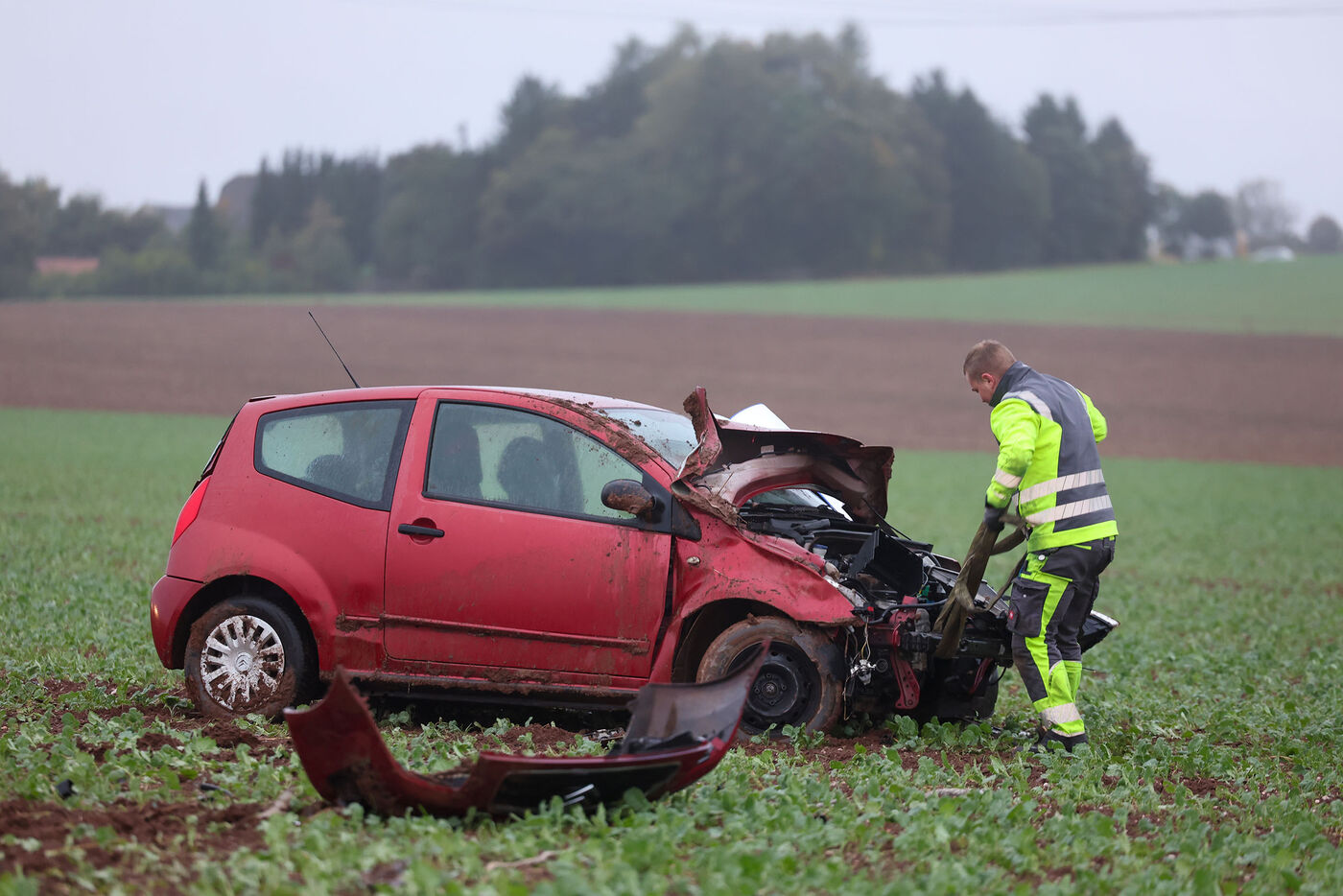 Auf dem Autobahnzubringer Hartenstein hat sich am Montagmorgen (5:50 Uhr) ein Auto überschlagen. Laut Polizei war der 20-jährige Fahrer Richtung Zschocken unterwegs, als er aus bislang ungeklärter Ursache nach rechts von der Straße abkam. Der Citroen überschlug sich mehrfach und landete in einem Feld.