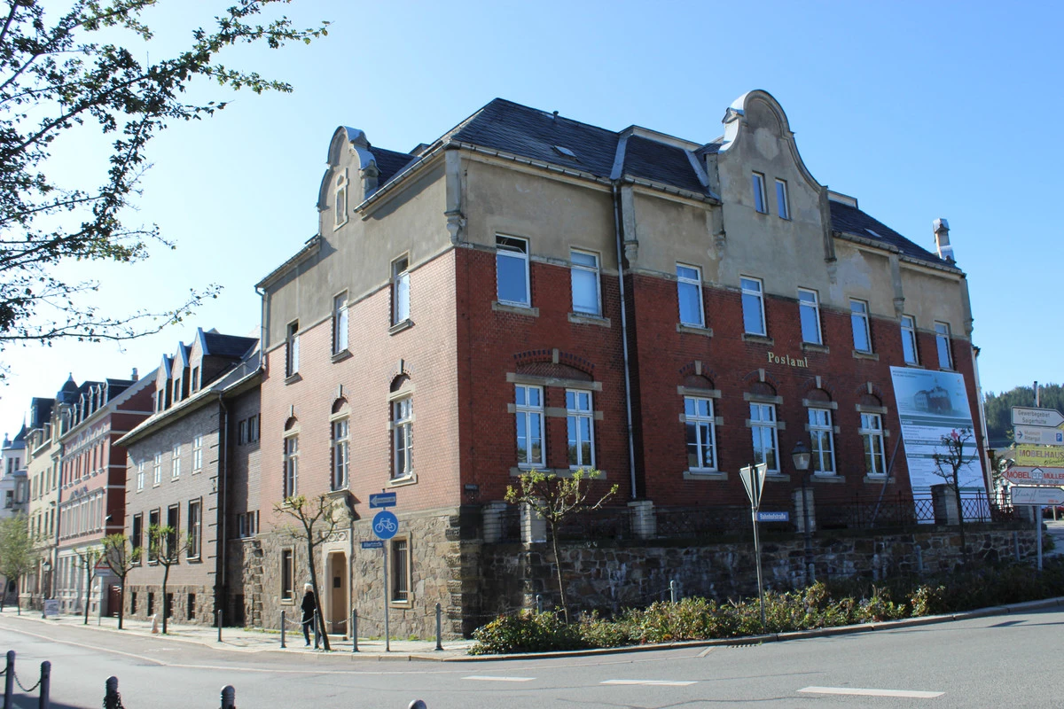 Olbernhau war bis 1902 noch ein Dorf. Um eine Stadt zu werden, fehlte es der Kommune vor allem an einem - einer Post. Deshalb begann man 1896 mit einem repräsentativen Gebäude aus roten Ziegeln mitten im Zentrum der Stadt. Das bot die Stadt dann der kaiserlichen Post an und die nahm es dankend an. Damit war eine wichtige Grundlage für die Stadtrechte geschaffen. Diese erhielt die Stadt dann 1902.