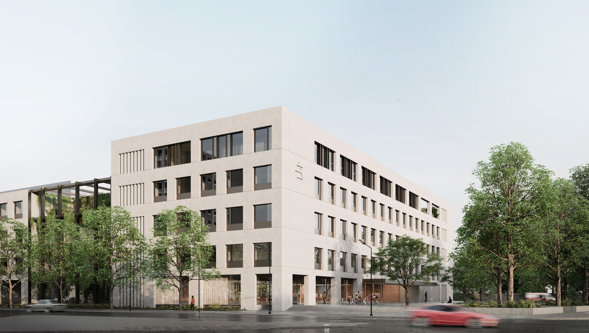 - Visualisierung Herzzentrum aus der Perspektive Blasewitzer Straße. Entwurf von 11/23