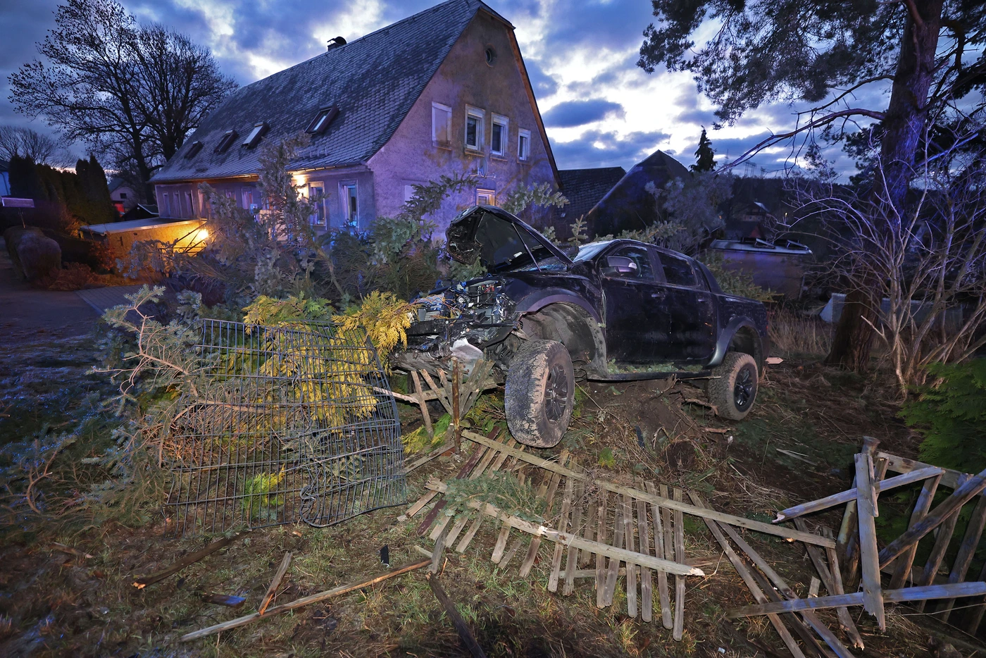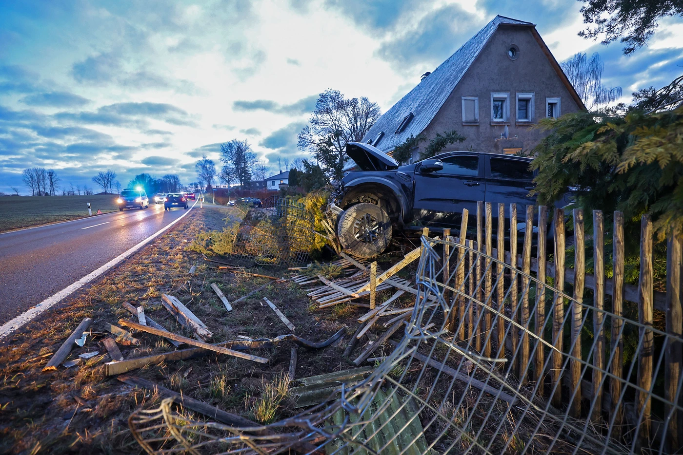 In Pleißa bei Limbach-Oberfrohna ist am frühen Mittwochmorgen ein Pick-Up schwer verunglückt. Wie unser Reporter berichtet, war das Fahrzeug gegen 5.50 Uhr von der Hohensteiner Straße abgekommen und durch einen Grundstückszaun geprescht. Im dahinterliegenden Vorgarten rasierte der Wagen mehrere Bäume, bis der Ford schließlich zum Stehen kam. Der Fahrer stand laut Polizei unter Drogen. Er kam verletzt in eine Klinik.