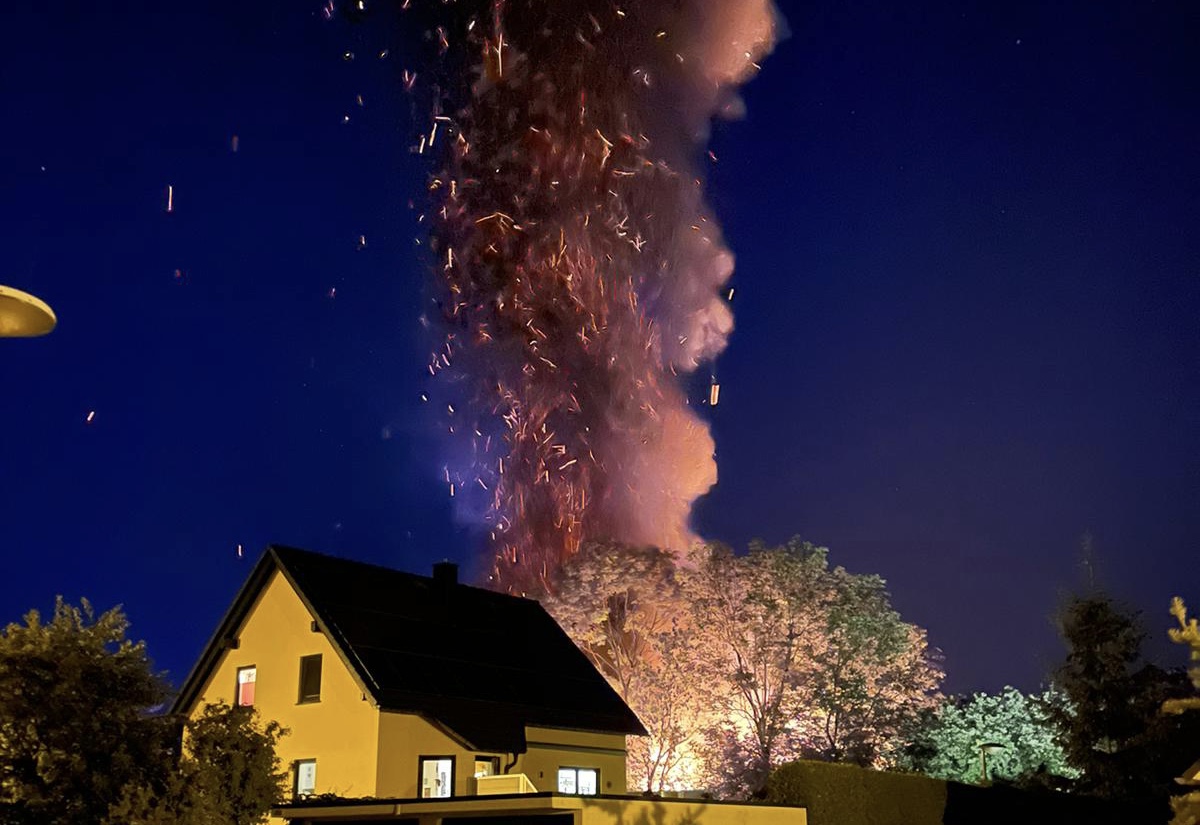 Rauchentwicklung und Funkenflug waren enorm, Anwohner sollten Fenster und Türen geschlossen halten. Verletzt wurde niemand, die Höhe des Sachschadens und die Brandursache sind noch unklar.