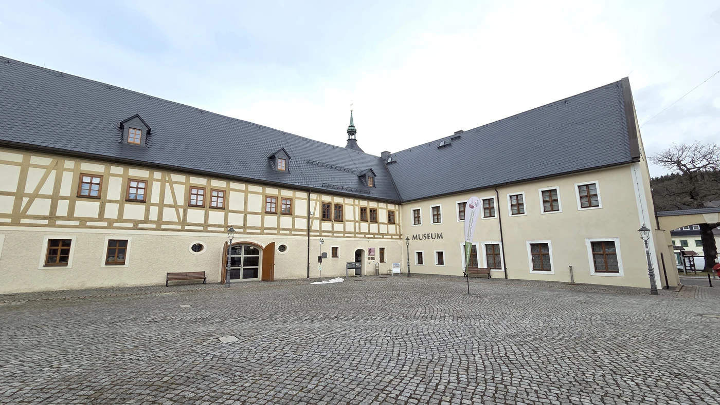 Olbernhau war lange Zeit ein Dorf. Eine besondere Bedeutung hatte es aber trotzdem - es war die Waffenschmiede Sachsens. Damit war Olbernhau ein königlich-sächsisches Amtsdorf. Geführt wurde es nicht von einem Bürgermeister wie heute sondern von einem Rittergutsbesitzer. Dieser hatte als Sitz ein Schloss, dass auf dem heutigen Marktplatz stand.