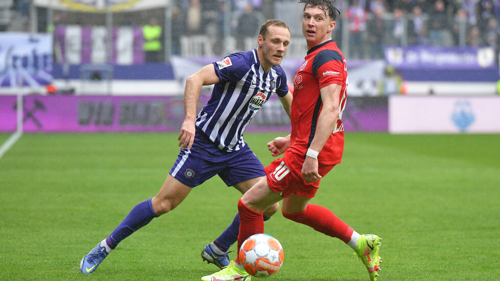 Patzer und Fehler prägten die Partie. Mitten in einer Druckphase der Hanseaten erobert Messeguem den Ball beim Rostocker Spielaufbau, spielt blitzschnell auf Nazarov (45.), der den Ball gekonnt aus 18 Metern ins rechte Eck schlenzte. Der erneute Ausgleich von Rostock passte zum Spiel. Ein langer Einwurf rutschte durch die komplette Auer Abwehr, bis Becker am langen Pfosten aus Nahdistanz den Ball ins Eck spitzelte. (dpa)