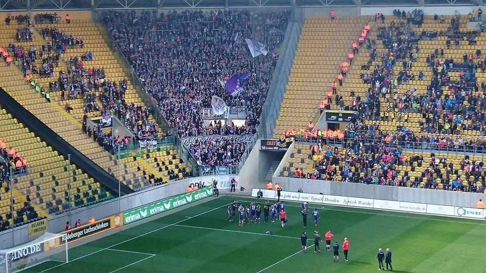 Der FC Erzgebirge Aue steht im Endspiel um den Sachsenpokal. Im Halbfinale feierten die Veilchen beim Drittligarivalen in Dresden einen deutlichen und verdienten 3:0-Sieg. Vor 25.000 Zuschauern trafen Pascal Köpke und Simon Skarlatidis für Aue im ersten Durchgang. Nach einem Abspielfehler der Dresdner in der zweiten Halbzeit machte Mario Kvesic den Sieg perfekt. Im Endspiel trifft Aue auf den Regionalligisten FSV Zwickau. Der Spieltermin ist noch offen. Jetzt geht es erst einmal am kommenden Freitag in der 3. Liga mit dem Auswärtsspiel in Magdeburg weiter.
