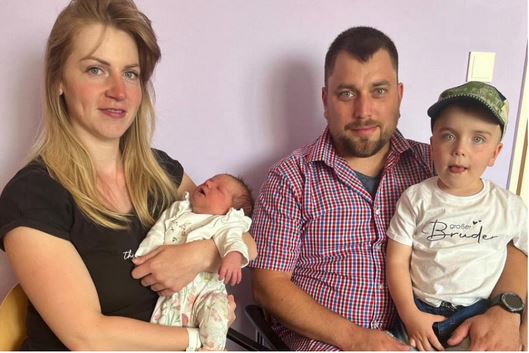 - Die 200. Geburt im Jahr 2024 im Haus Annaberg: Letty Großmann mit ihrer Familie