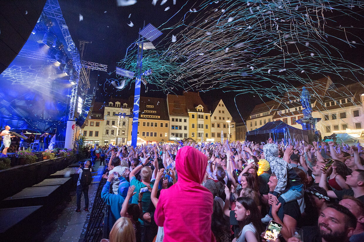 - Beim letzten Bergstadtfest 2022. Rund um die Hauptbühne am Obermarkt gibt es während der Sause am meisten zu tun.