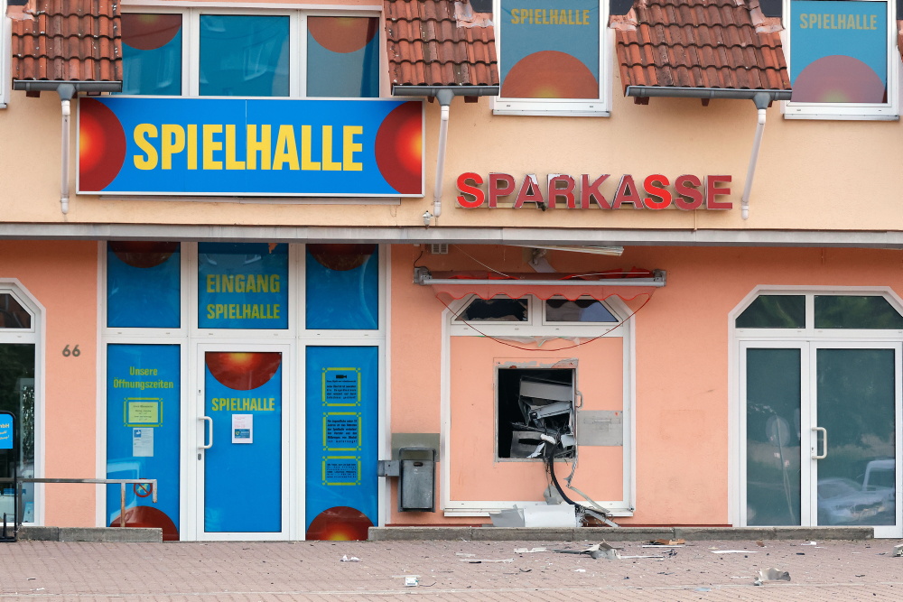 Der Sparkassenautomat wurde bei der Explosion aus der Wand gerissen und zerstört. Wie viel Geld die Täter erbeuten konnten, und wie hoch der Schaden am Gebäude ist, ist noch unklar. Die Kriminalpolizei ermittelt.