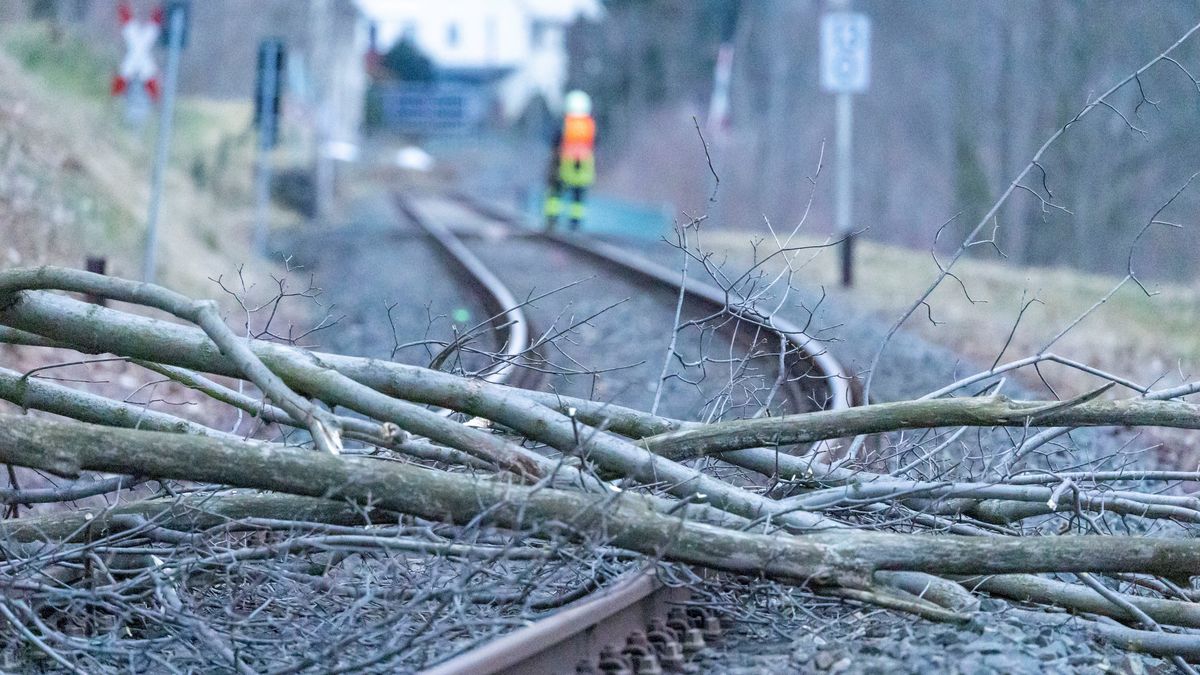 Gesperrte Bahnstrecke wegen Sturm in Sehma