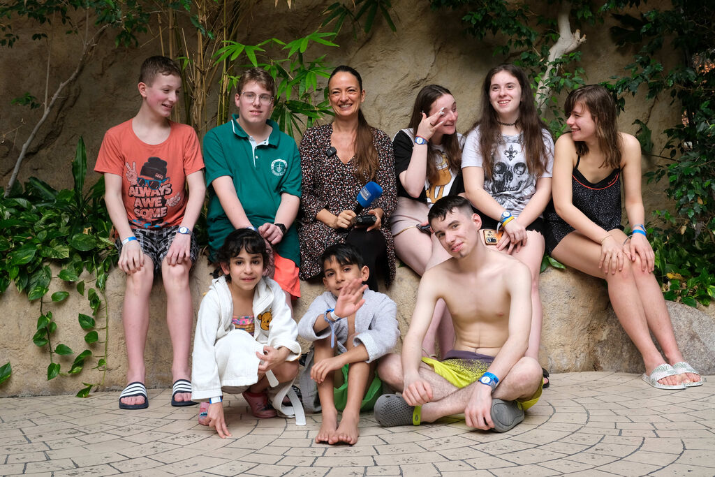 Kim Schäfer vom Tropical Islands hatte die Kinder eingeladen und das Wetter war wie gemacht, um vom Süden zu träumen. Draußen gabs Nieselregen und drinnen tummelten sich die Kinder bei 28 Grad Wassertemperatur.