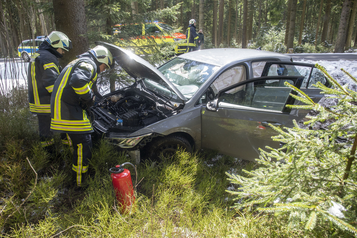 Im Wald gelandet – VW-Fahrerin baut Unfall bei Geyer