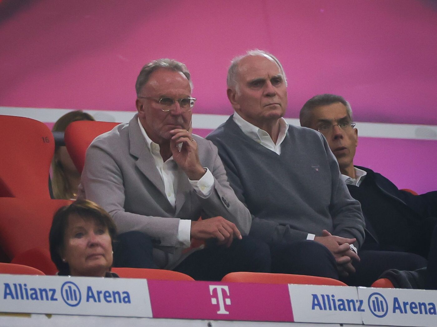 - Karl-Heinz Rummenigge (l) und Uli Hoeneß auf der Tribüne der Allianz Arena. (Archivbild)