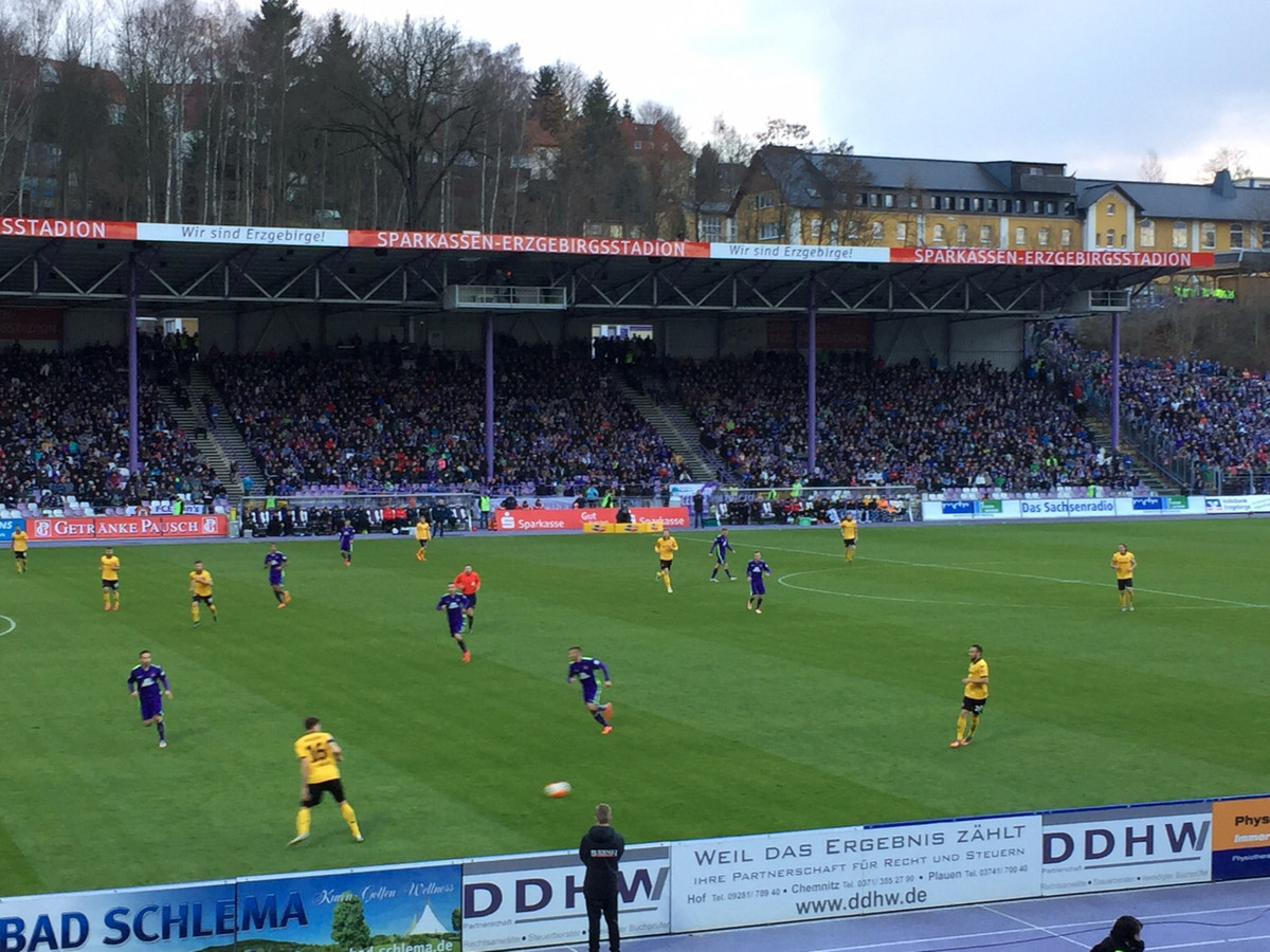 Die Serie hält! Erzgebirge Aue bleibt auch im 20. Jahr in Folge zu Hause gegen Dynamo Dresden ungeschlagen. Im Sachsenderby gegen den Rivalen kämpften sich die Veilchen vor 15.000 Zuschauern zu einem 1:1. Die Dresdner konnten in der ersten Halbzeit in Führung gehen. Im zweiten Durchgang drückte Aue aber auf den Ausgleich und wurde belohnt. Nach einem Freistoß in der 75. Minute stand Steve Breitkreuz goldrichtig und drückte den Ball über die Linie. In der Tabelle ist Erzgebirge Aue jetzt Sechster. Weiter geht's Sonntag in einer Woche erneut zu Hause gegen Fortuna Köln.