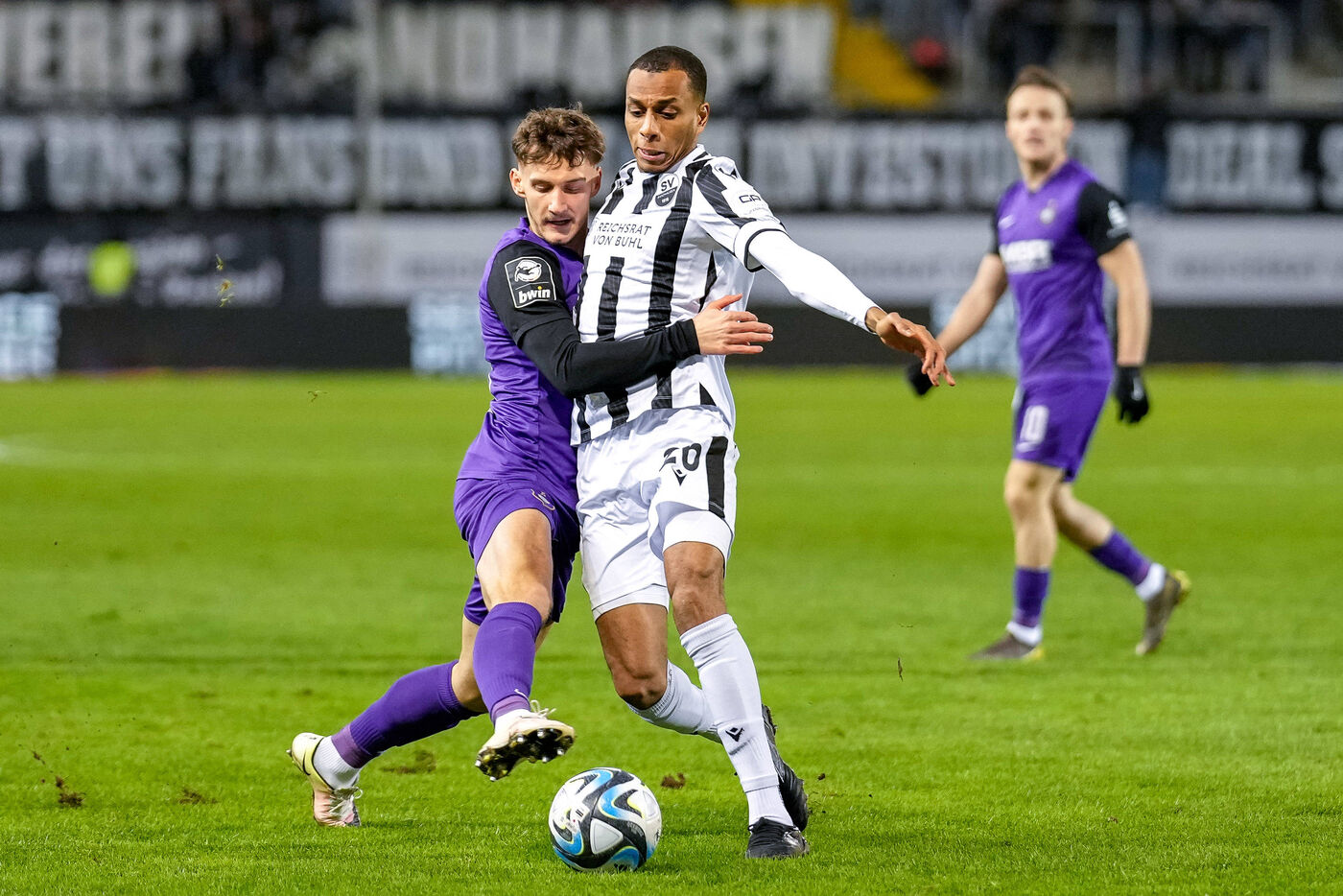 - Veilchen Spieler Omar Sijaric (links) hier im Duell mit dem Sandhäusener Yassin Ben Balla.