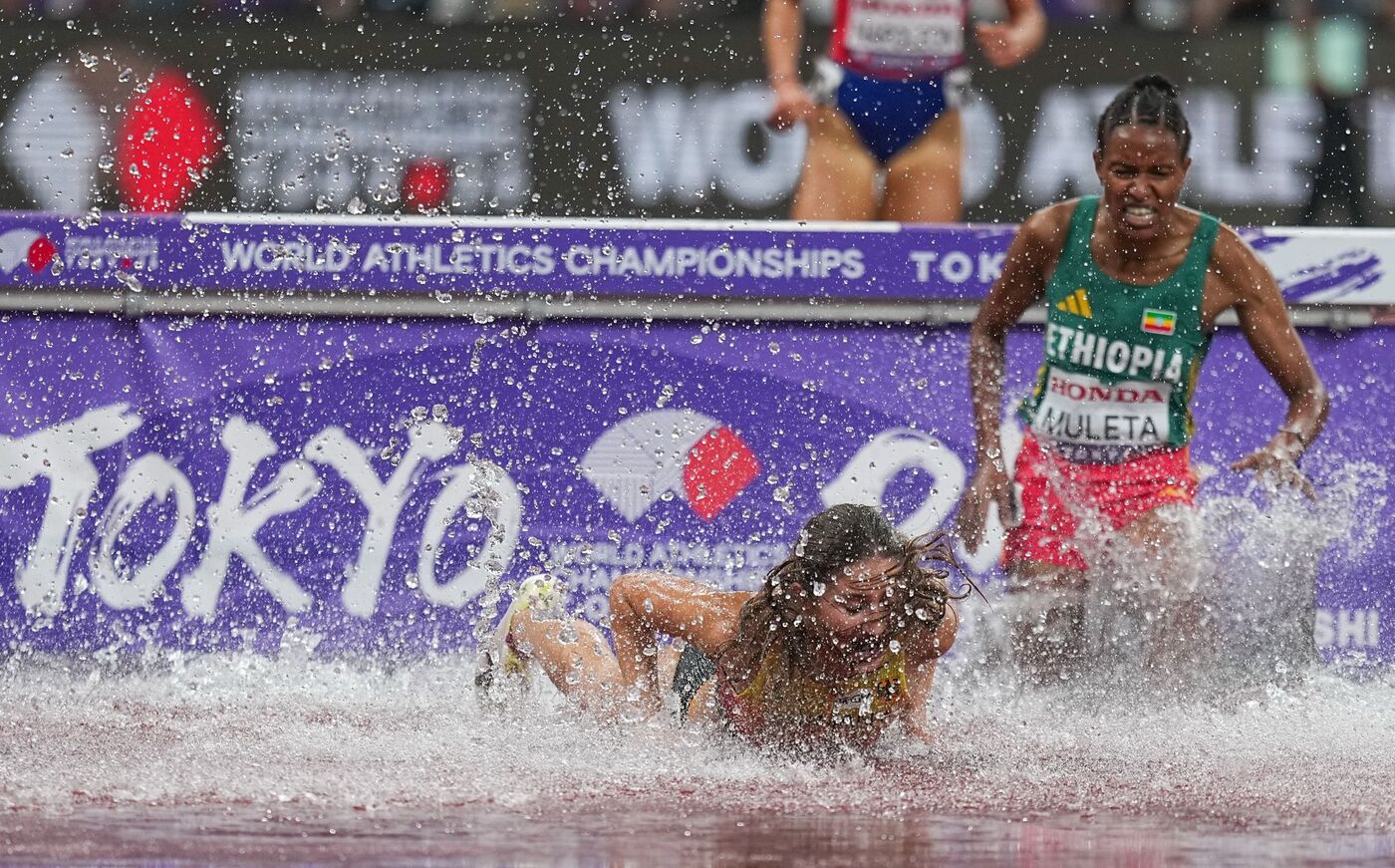 Schon vor Krauses Malheur war wiederholt ein Raunen durch das Nationalstadion Japans gegangen. Doris Lemngole (Kenia) und Norah Jeruto (Kasachstan) waren im Finish am letzten Wassergraben gestürzt, die in Führung liegende Peruth Chemutai (Uganda) war da nach einem Sturz schon lange raus. Weltmeisterin wurde Faith Cherotich (Kenia) in 8:51,59 Minuten.