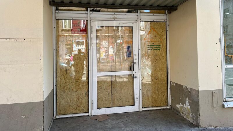 Die Polizeiwache, die künftig in der Eisenbahnstraße entstehen soll, wurde verbarrikadiert. Die Scheiben sind mit Spanplatten verstärkt worden.