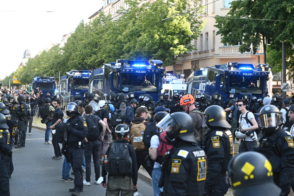 Die Lage in Leipzig ist trotz der Mobilisierung der linken Szene nach Einschätzung der Polizei bis zum Nachmittag weitgehend ruhig geblieben. Einsatzschwerpunkte für den frühen Abend seien nun der Alexis-Schumann-Platz, wo es ab 16.30 Uhr eine angemeldete Demonstration geben sollte, sowie in der Wolfgang-Heinze-Straße, wo ab 17.00 Uhr eine große Demonstration stattfinden sollte, die jedoch verboten wurde, erklärte eine Polizeisprecherin.