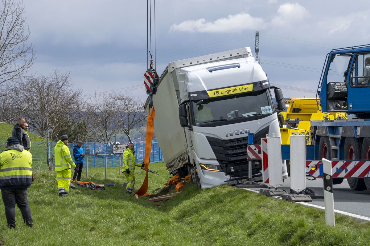 LKW rutscht in Graben – Straße bei Zwönitz blockiert