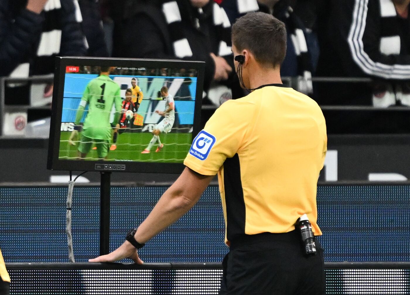 - Schiedsrichter Daniel Siebert überprüft den vermeintlichen Ausgleich von Eintracht Frankfurt.