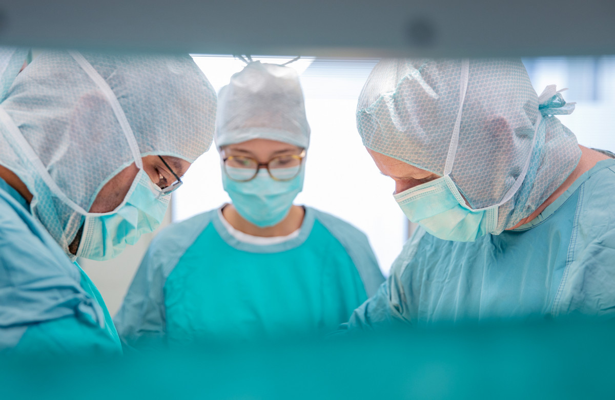 - Medizinstudentin Agata Pisarska (Mitte) im OP am Erzgebirgsklinikum Haus Stollberg.