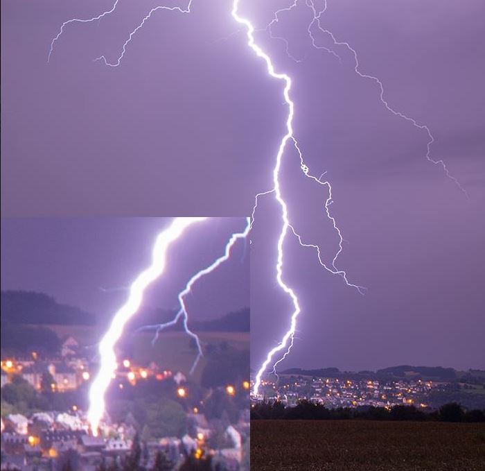 - Laut Kachelmannwetter hatte der Blitz eine Stärke von 10 Kiloampere. Foto (c) Bernd März, Sturmjägerteam Erzgebirge/Vogtland.