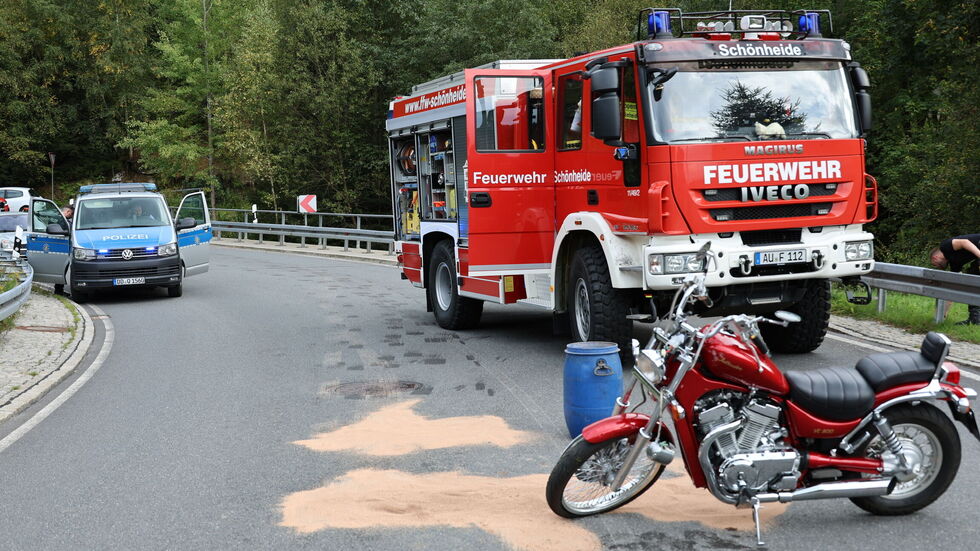 Ein Motorradausflug auf der B283 in Schönheide endete am Sonntagnachmittag für einen Motorradfahrer im Krankenhaus. Der Biker stürzte auf der Muldenstraße in einer Rechtskurve und verletzte sich schwer. Ein Rettungshubschrauber brachte den Mann ins Krankenhaus. Die Feuerwehr sicherte die Unfallstelle ab und nahm ausgelaufene Betriebsmittel auf. Die Bundesstraße war für rund zwei Stunden voll gesperrt. Die Polizei ermittelt zur genauen Unfallursache.