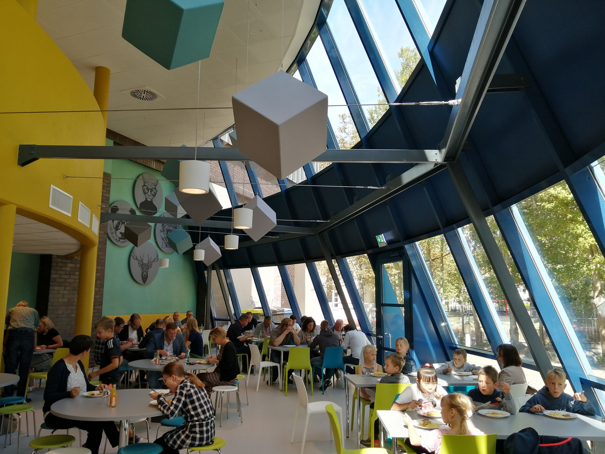 Die Schulmensa kann auch für andere Zwecke genutzt werden, für Elternabende oder für Sportvereine zum Beispiel. Insgesamt ist Platz für etwa 150 Personen.