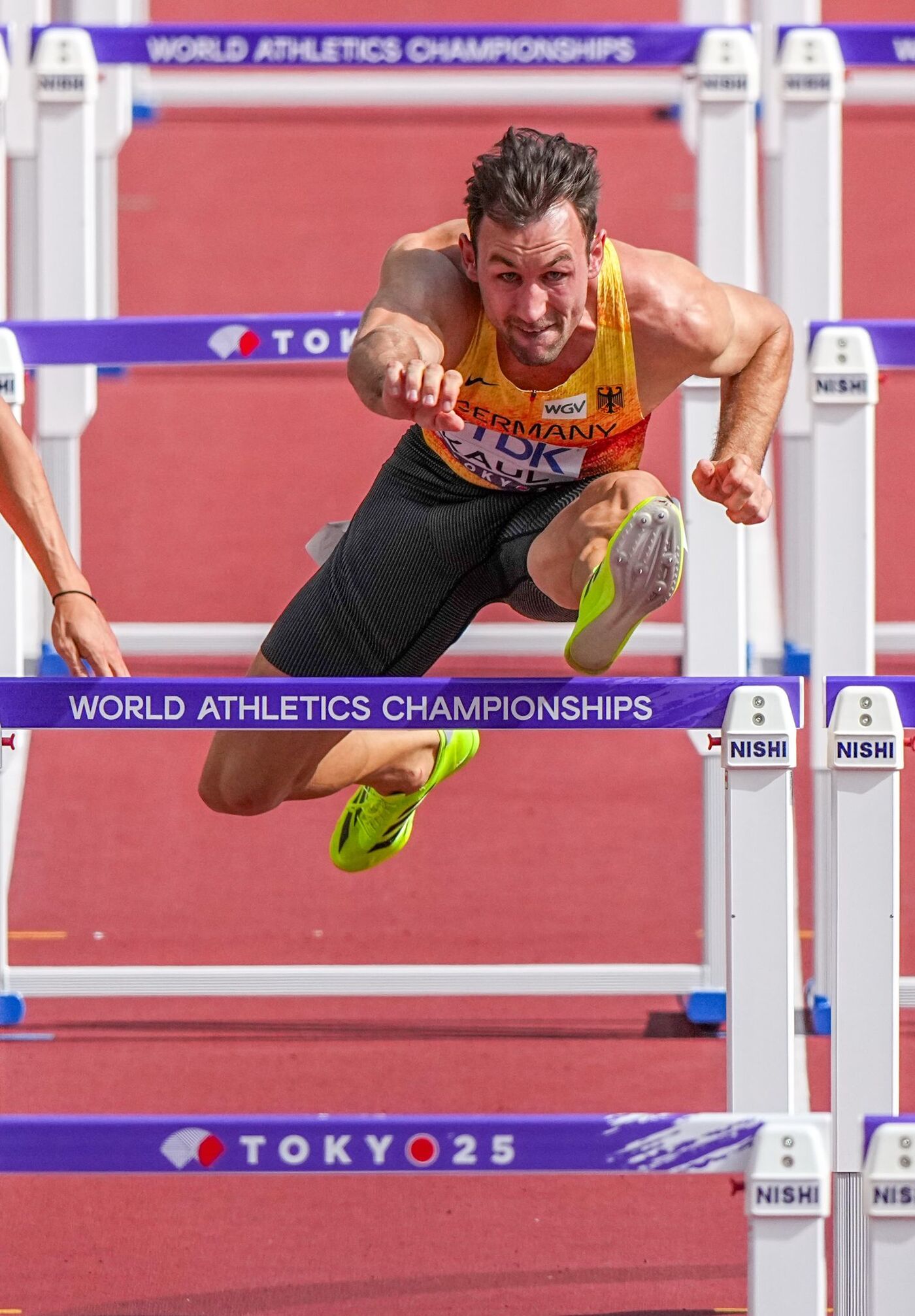 Traurig trottete zuvor der norwegische Topfavorit Sander Skotheim von der Bahn. Der Weltjahresbeste und Hallen-Weltmeister blieb über 110 Meter Hürden an einer Hürde hängen, stolperte fast und stieß die folgende Hürde per Hand um. Das hatte die Disqualifikation zur Folge.