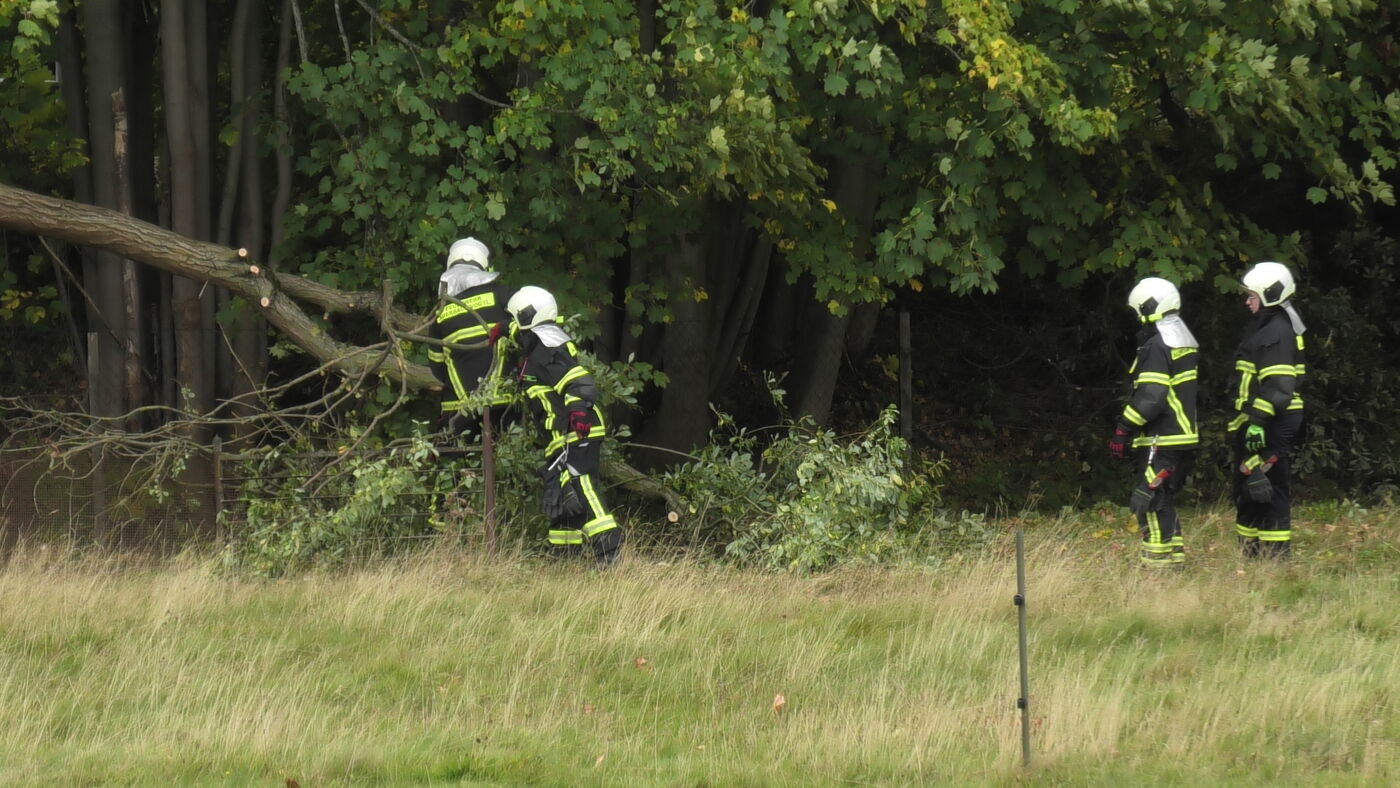 In Auerbach wurde ein Baum an einer Bahnstrecke entwurzelt. Er fiel auf den Zaun eines Schafgeheges, wodurch zwei Tiere frei kamen. Die Kameraden konnten die Schafe einfangen und verhindern, dass sie auf die Bahngleise laufen.