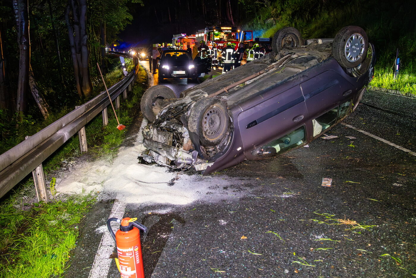 Auf der B169 hat es in der vergangenen Nacht einen schweren Verkehrsunfall gegeben. Ein Renault-Fahrer war aus Aue kommend in Richtung Lößnitz unterwegs. In einer Rechtskurve kam er von der Straße ab. Der 59-Jährige fuhr auf eine Böschung, überschlug sich und landete mit dem Dach zuerst auf der Gegenfahrbahn. Ersthelfer kümmerten sich um den schwer verletzten Fahrer, der Rettungsdienst brachte ihn ins Krankenhaus. Auch die Freiwillige Feuerwehr Lößnitz und die Ölwehr waren im Einsatz. Die Bundesstraße war für mehrere Stunden voll gesperrt. Zur Unfallursache wird ermittelt.
