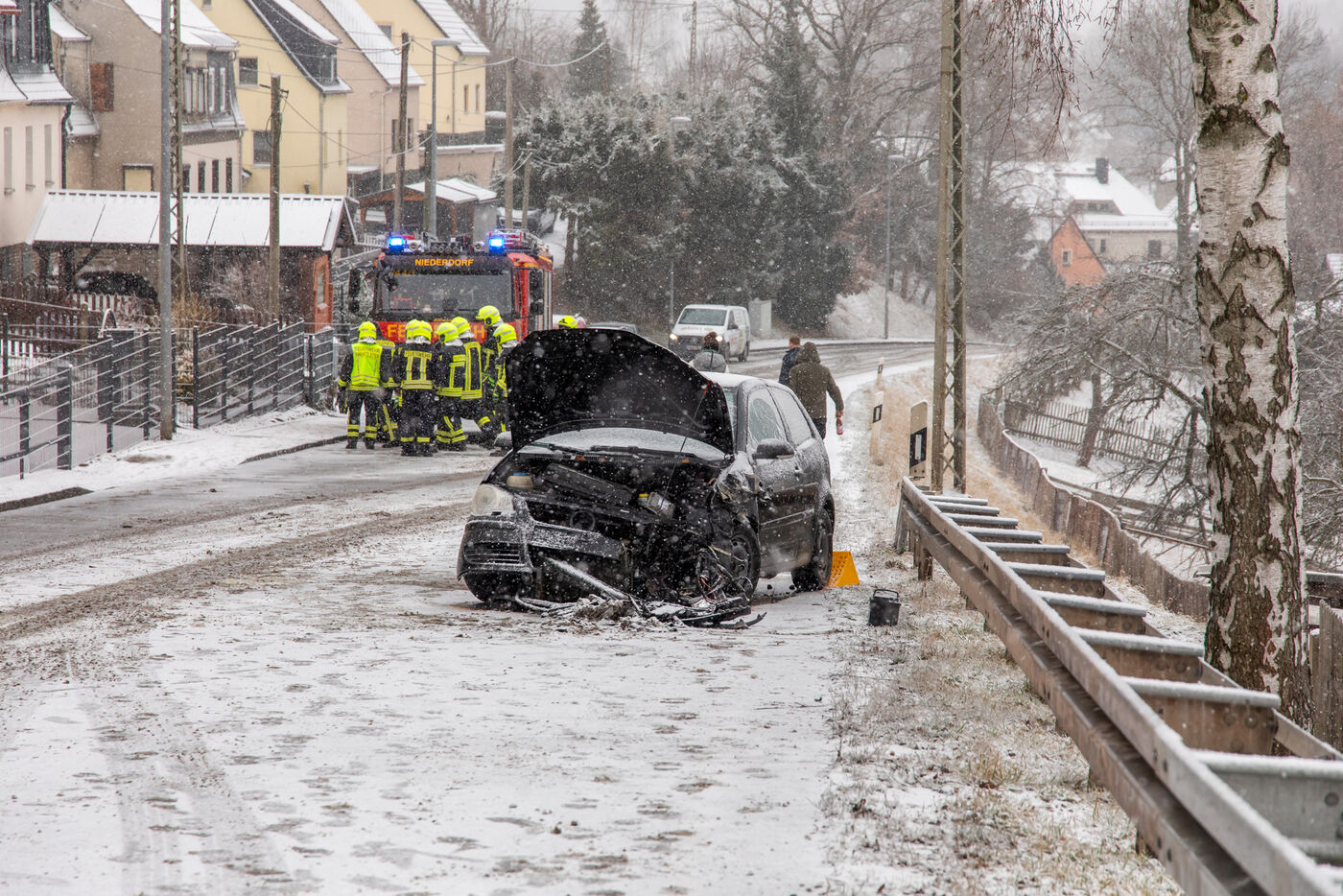 Der Winter ist im Erzgebirge zurück. Seit Montagmorgen kommt es zu Schneefällen. Das sorgt für glatte Straßen und Behinderungen im Straßenverkehr. Wegen Schneeglätte kam es in Niederdorf bei Stollberg zu einem Unfall. Dort war eine VW-Fahrerin in die Gegenspur der Chemnitzer Straße geraten und mit einem LKW kollidiert. Die schwangere Frau wurde verletzt und per Rettungswagen ins Krankenhaus gebracht, so ein Vor-Ort-Reporter. Am VW entstand ein Totalschaden.