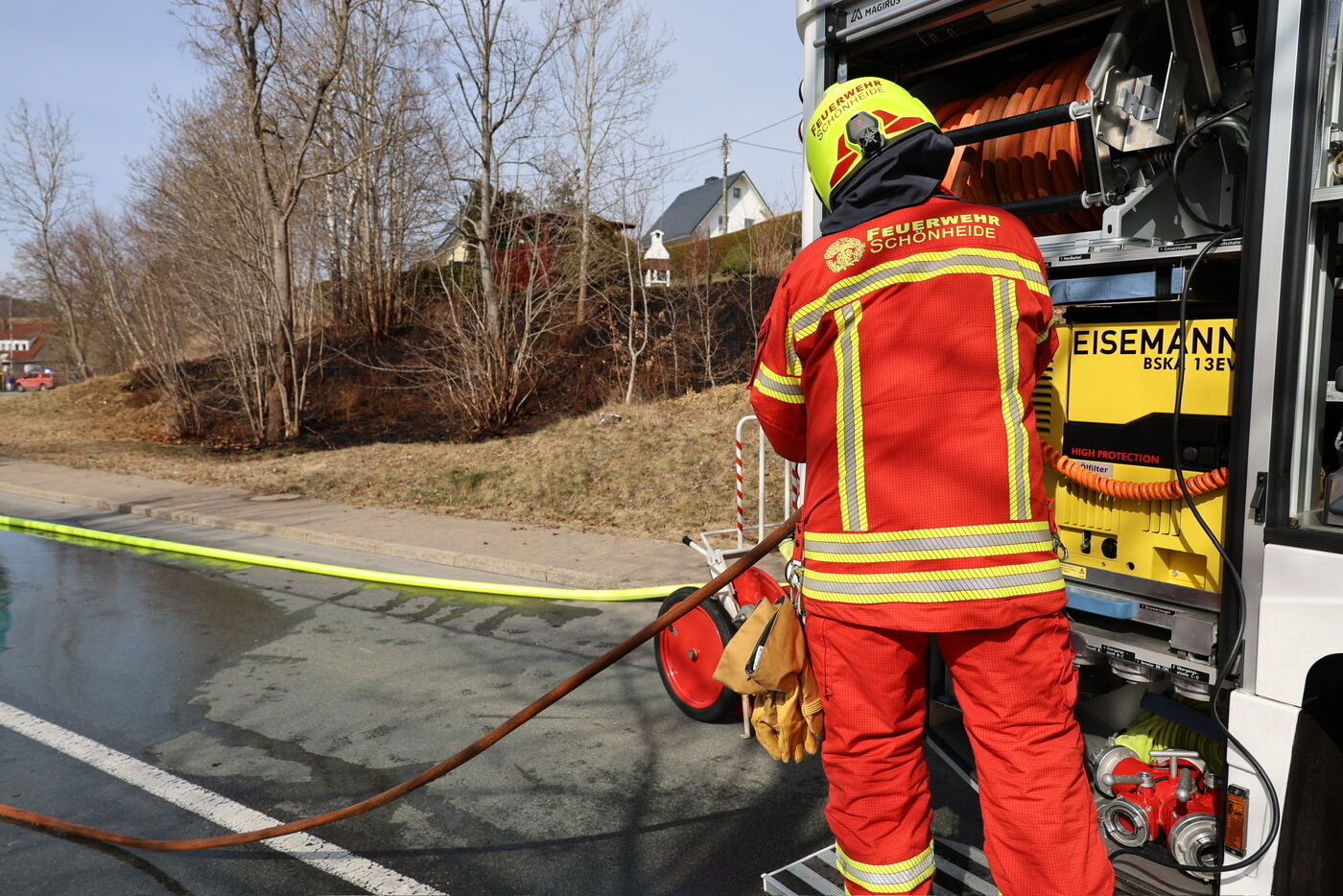 Bei einem Löscheinsatz in Schönheide ist am Mittag ein Feuerwehrmann verletzt worden. Die Wehren aus Schönheide und Eibenstock waren zu einem Vegetationsbrand alarmiert worden.