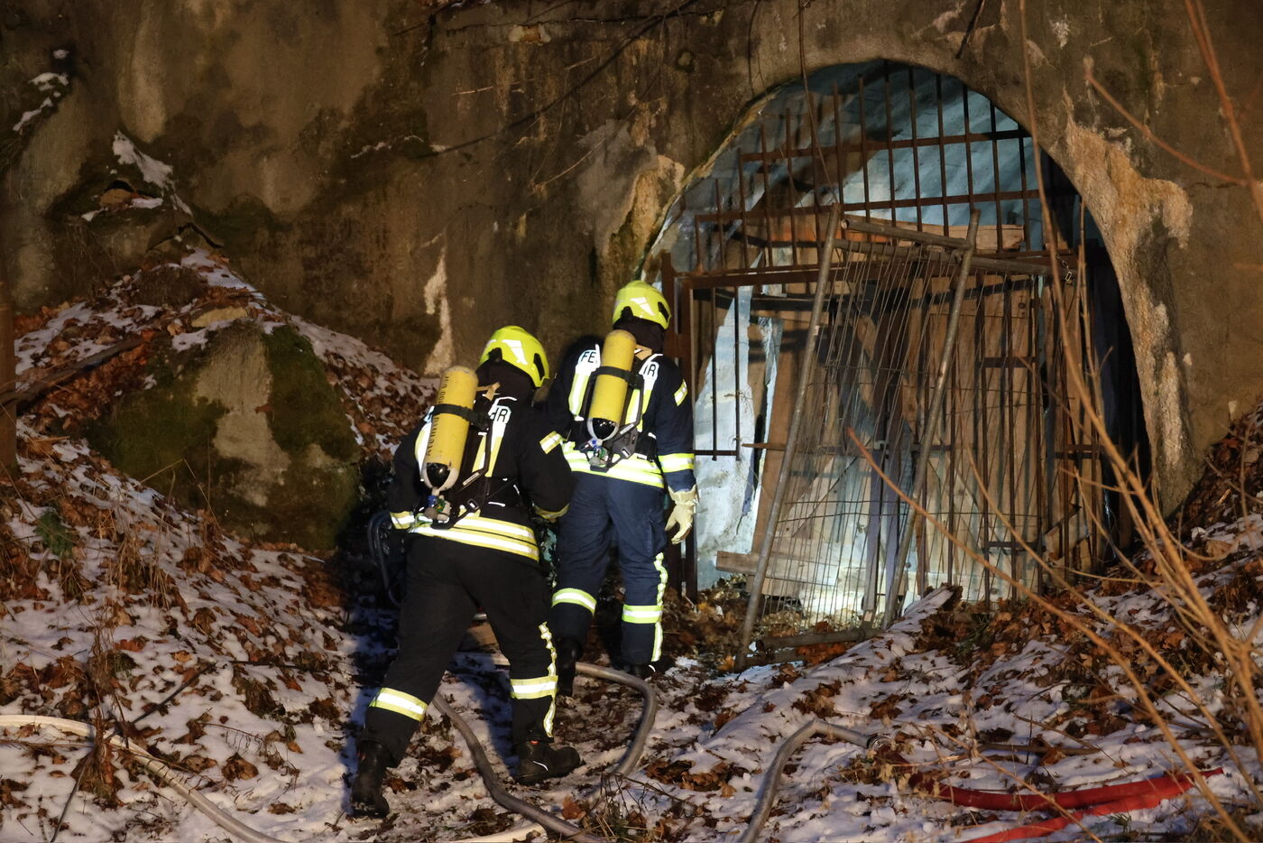 Die Feuerwehren aus Schwarzenberg, Heide, Sachsenfeld und Grünstädtel rückten an. Ein Trupp ging unter Atemschutz rein und stieß auf das brennende Lagerfeuer. Personen wurden nicht angetroffen. Die Polizei hat die Ermittlungen aufgenommen.