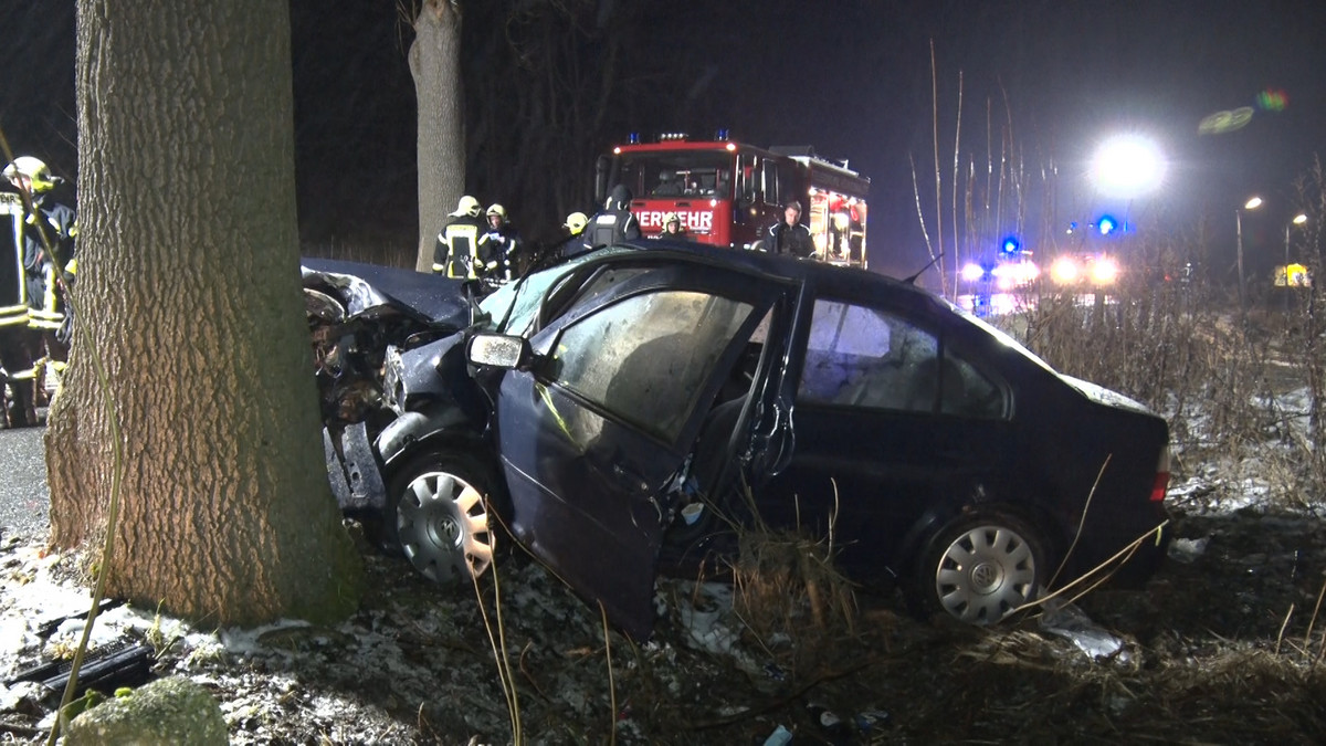 Bei einem Unfall zwischen Königswalde und Bärenstein ist ein Autofahrer schwer verletzt worden. Der Mann war am Mittwochabend in Höhe einer Gaststätte frontal gegen einen Baum gekracht.