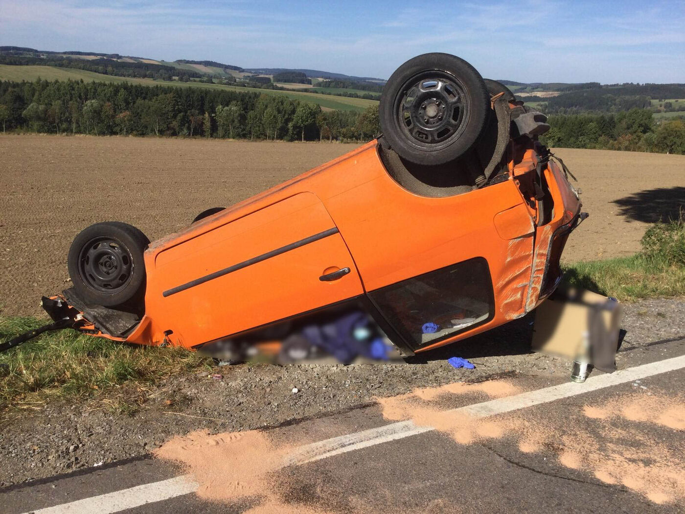 - Der VW hatte sich überschlagen und blieb auf dem Dach liegen.
