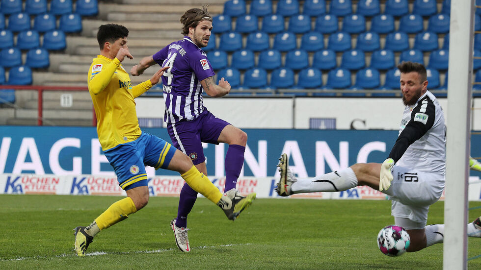 Der FC Erzgebirge Aue hat die 40-Punkte-Marke in der Zweiten Fußball-Bundesliga geknackt. Beim Auswärtsauftritt in Braunschweig gewannen die Veilchen am Freitagabend mit 2:0. Dank der Treffer von Dimitrij Nazarov (48. Minute) und Philipp Zulechner (82.) hat der FCE den Klassenerhalt so gut wie sicher.