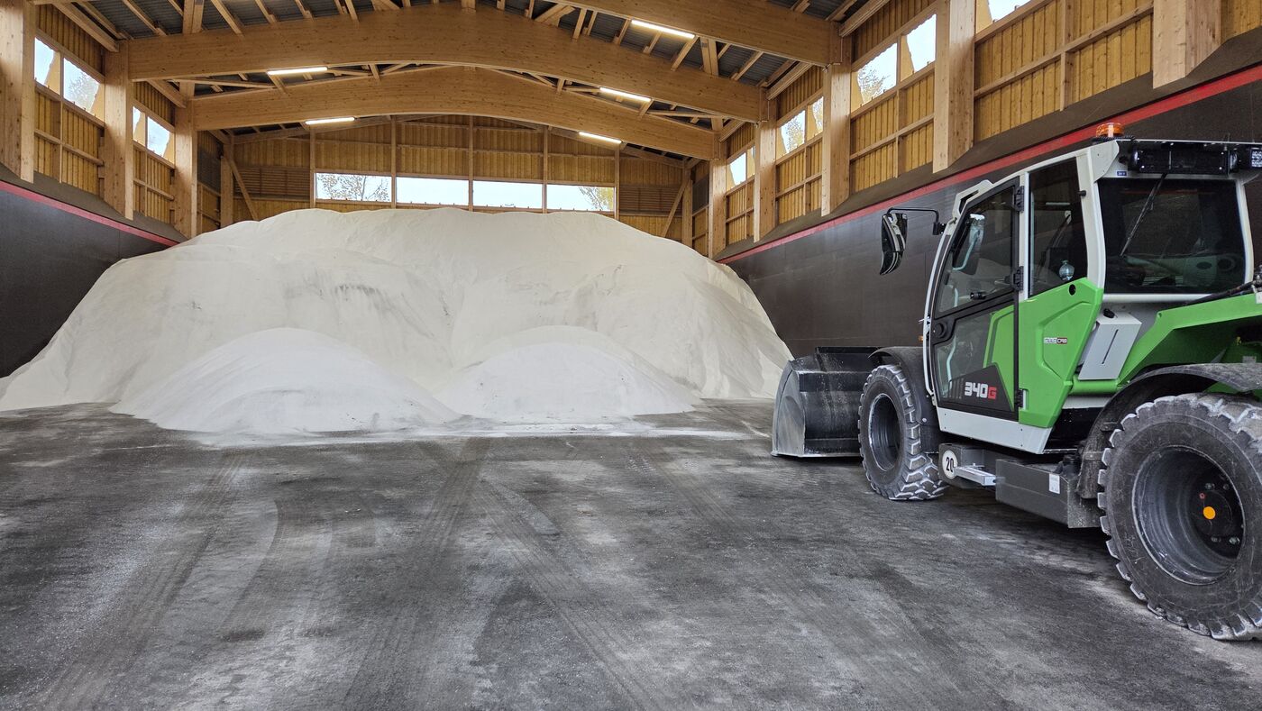 - 3.000 Tonnen Streusalz können in der Salzhalle eingelagert werden.