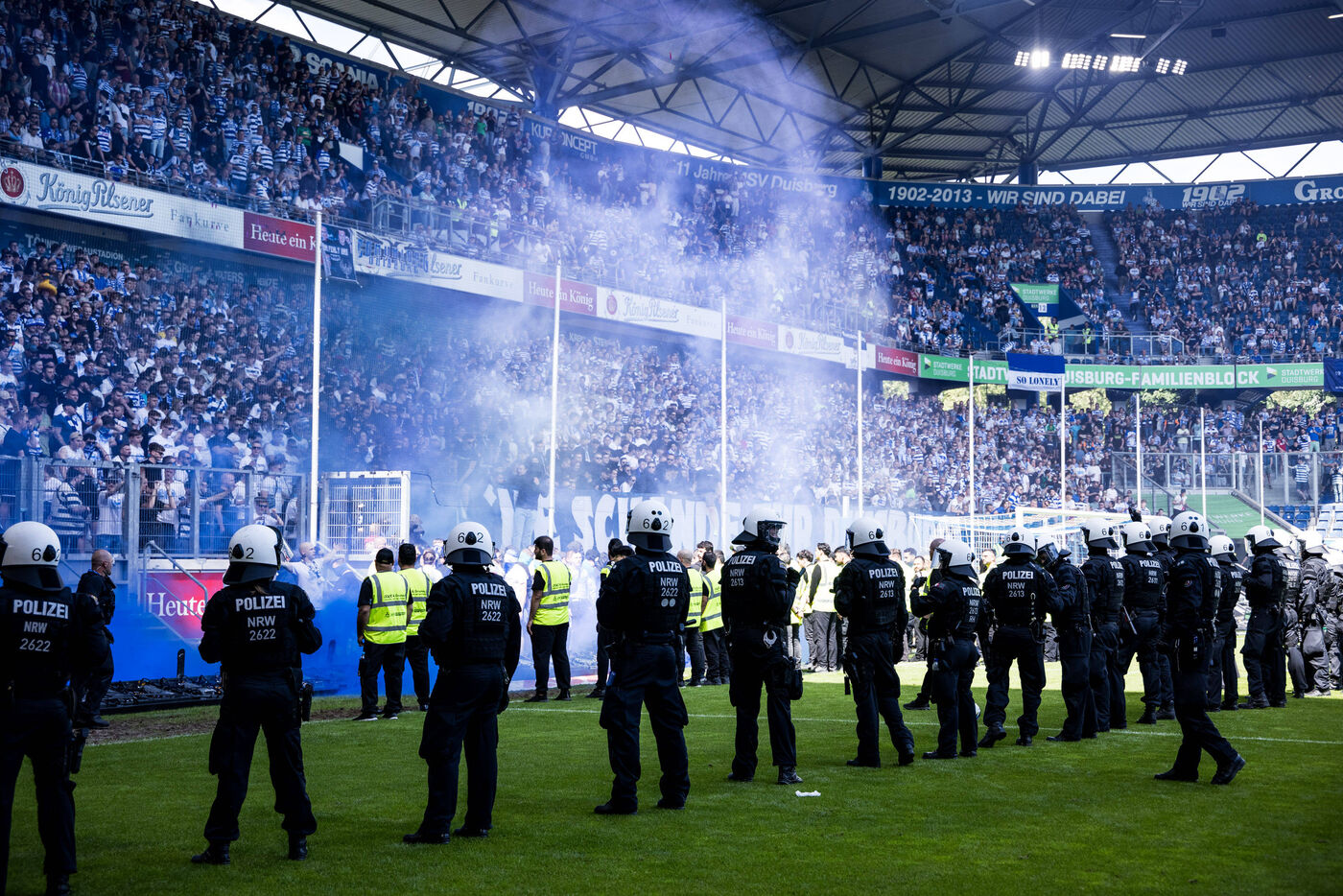 - Minutenlang stand die Polizei vor dem Duisburger Fanblock - am Ende konnte das Spiel zu Ende geführt werden