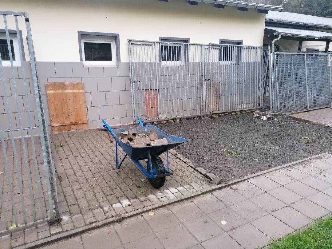 Das alte Pflaster soll weg, es muss auch gebuddelt und trocken gelegt werden. Alles nach dem Motto - viele Hände machen ein schnelles Ende. Die Bodenplatte wird dann von einer Firma gegossen. Das Tierheim will aber möglichst viele Vorarbeiten selbst erledigen, um die Kosten zu senken.