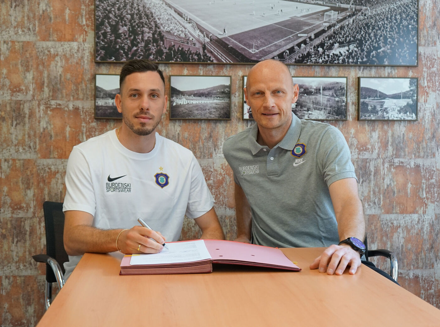 - Marcel Bär (links) mit FCE-Sportgeschäftsführer Matthias Heidrich.