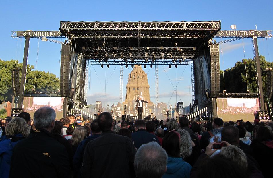 Der Graf begeistert: vor rund 7.000 Fans am Völkerschlachtdenkmal gab der Sänger am Donnerstag-Abend mit seiner Band „Unheilig“ das erste seiner beiden Konzerte hier in Leipzig. Dabei stellte er das aktuelle Album „Lichter der Stadt“ vor. Um 18.30 Uhr steigt heute Abend das zweite „Unheilig“-Konzert am Völkerschlachtdenkmal. Es ist mit 12.000 Karten ausverkauft. Setlist01 Das Licht / 02 Herzwerk / 03 Lichter der Stadt / 04 Unter deiner Flagge / 05 Große Freiheit / 06 Auf ewig / 07 Unsterblich / 08 Nachtschicht / 09 Ein großes Leben / 10 Feuerland / 11 Wie wir waren / 12 Ein guter Weg / 13 Eisenmann / 14 Das Leben ist schön / 15 Tage wie Gold / 16 Abwärts / 17 Geboren um zu leben / Zugabe 1: So wie du warst / 19 Für immer / Zugabe 2: Maschine / 21 Stark